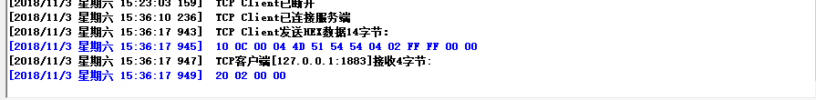 这个问题经过百度后, 发现wireshark是解析不出mqtt协议的, 需要增加第三方插件, 参考了: https://www.jianshu.com/p/a766dcfa747d https://www.cnblogs.com/ascii0x03/p/8781643.html 结果还是没解决, 心想是不是服务器的问题(我原来用的apollo搭建的mqtt服务器, 现在用的是本文提到的emqtt服务器), 后来在电脑上安装了emqtt服务器, 神奇了能解析出了mqtt协议了, 效果如上图所示, 既然能解析出了, 那来测试一下吧, 用通信猫向服务器发送一段16进制的报文: 10 0c 00 04 4d 51 54 54 04 02 ff ff 00 00 结果返回了20 02 00 00 该段返回码表示我连接成功了, 如下图所示: