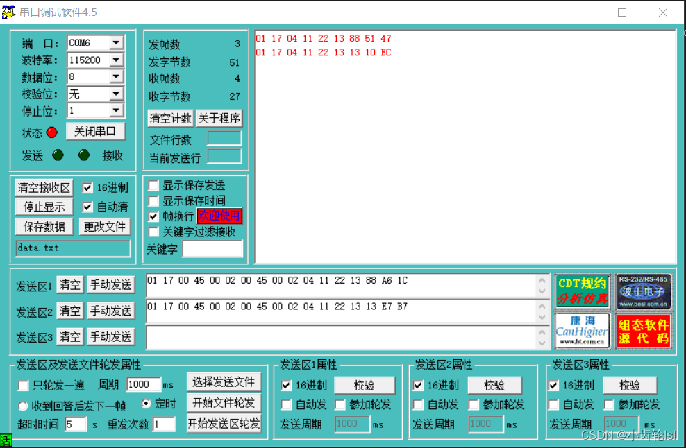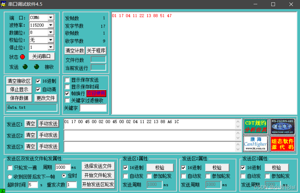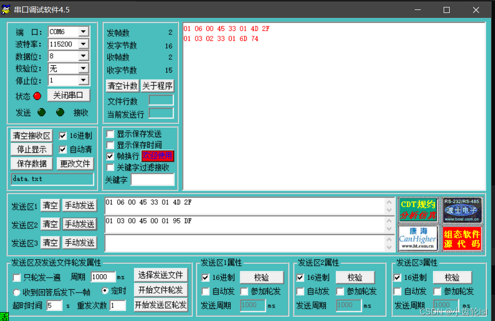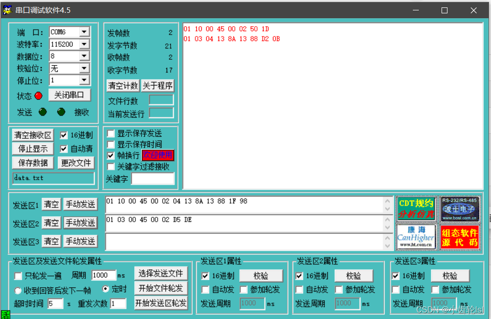 在写入之后,可以用0x03功能码读取0x45地址的数据查看是否写入成功,可以从图中验证看到,0x3301成功写入0x45地址。