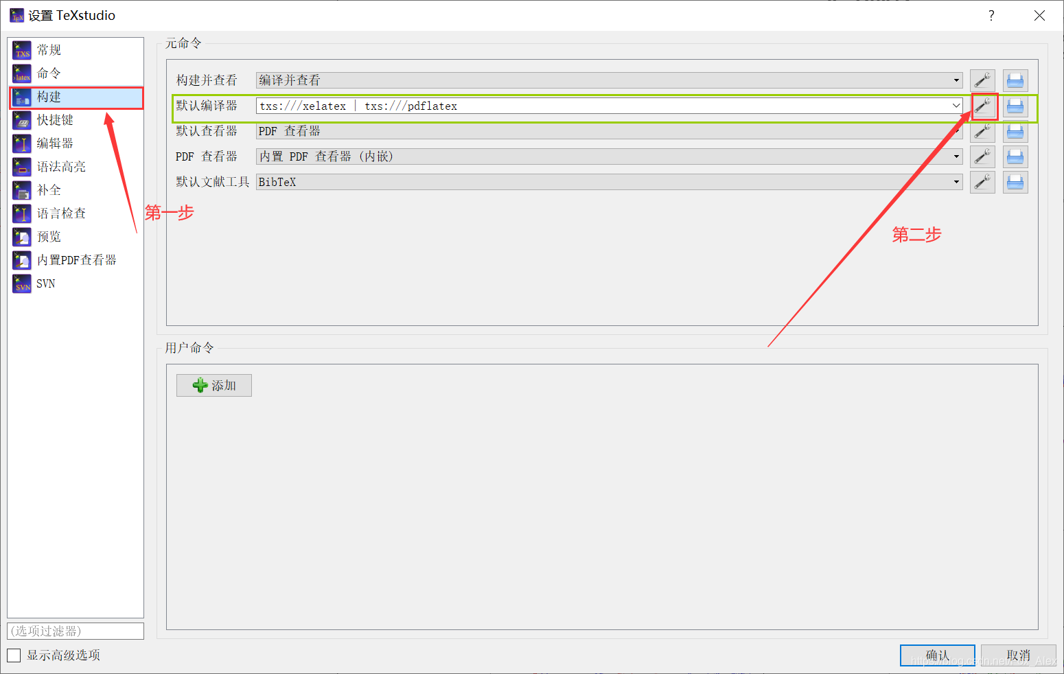 (2)点击设置TeXstudio