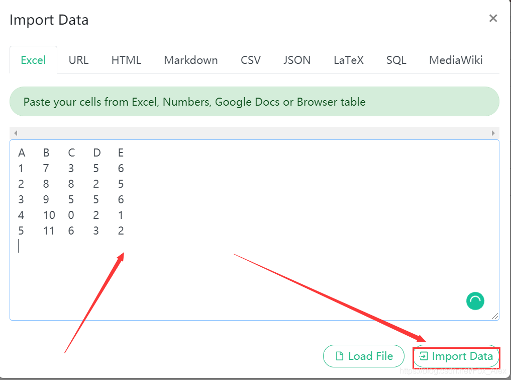 (3)在文本框粘贴数据,然后点右下角的Import Data;
