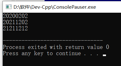 3.第一个输出满足:日期判断、回文序列判断同时成立