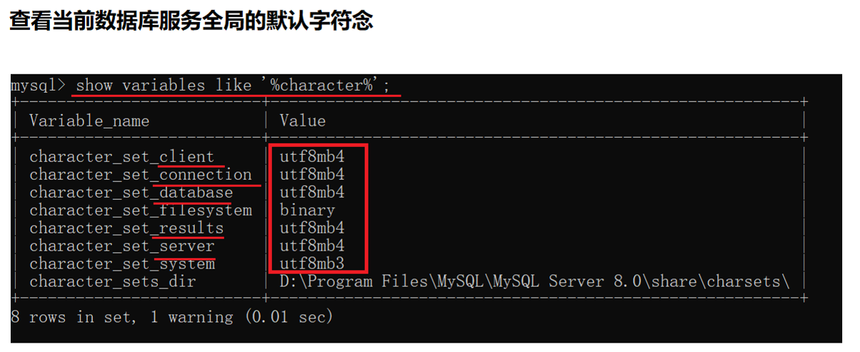 查看 当前数据库服务全局的默认字符集