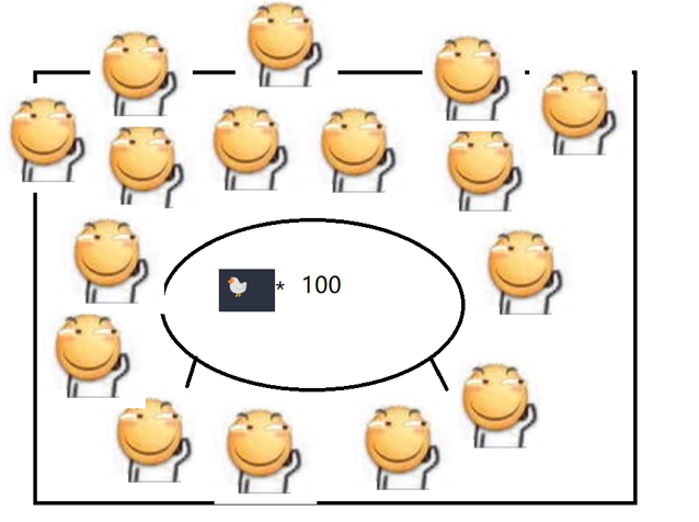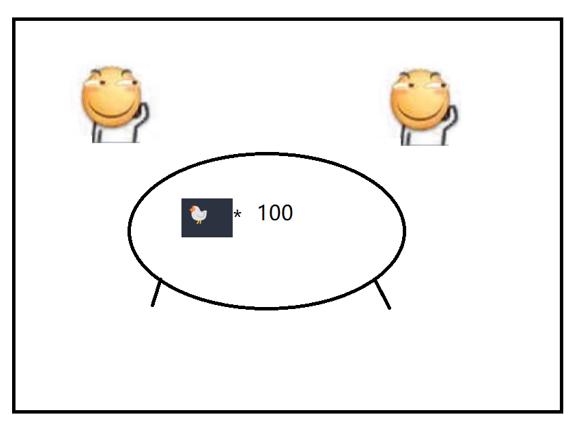 假设问题: 1个房间 1张圆桌上摆满100份鸡腿 现有1名员工 需要吃完这100份鸡腿