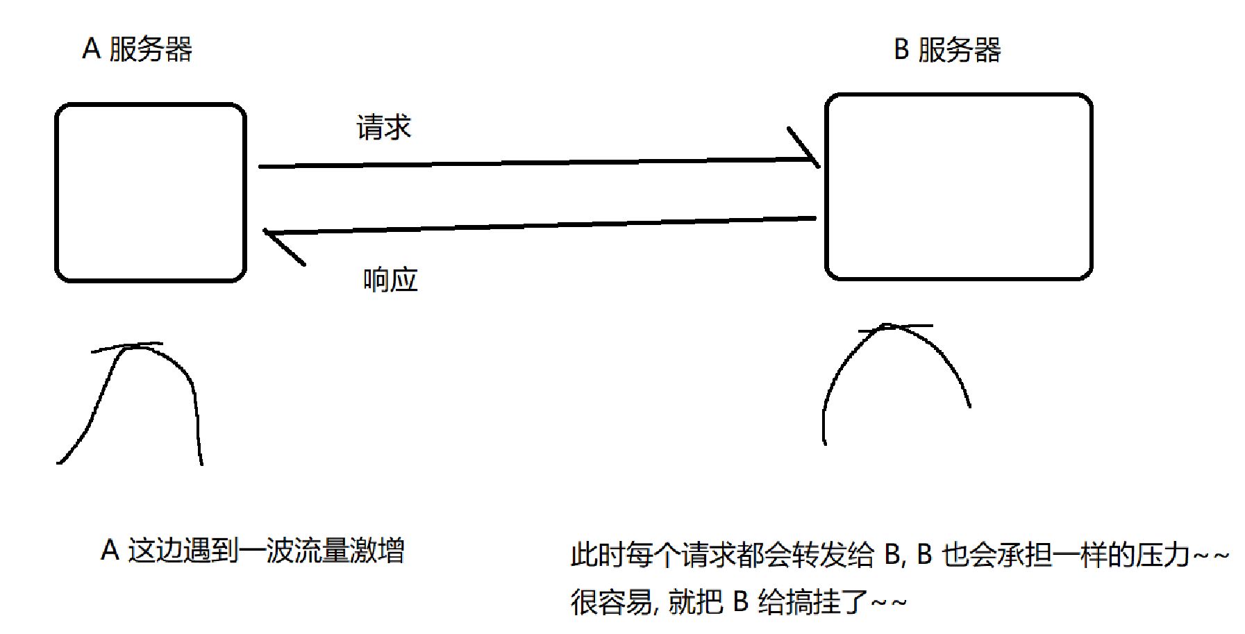 如果出现上游服务器A 流量激增,为了控制节奏,先放入阻塞队列,高峰期 B服务器慢慢处理队列中的请求,低谷期时 可以赶紧处理剩余的请求。