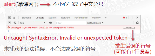 - alert(慕课网); 忘记用引号包裹