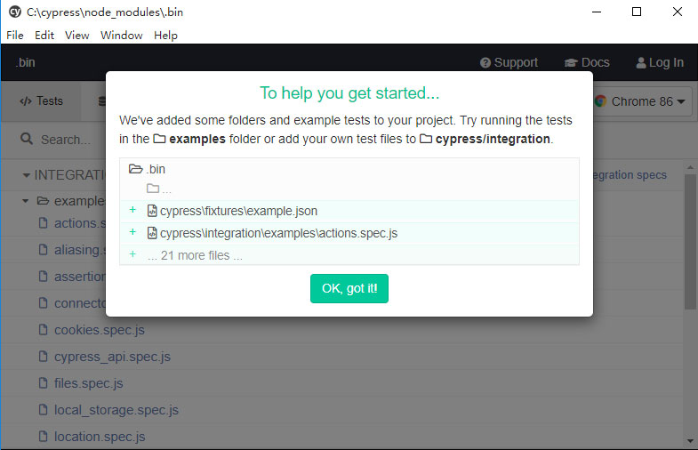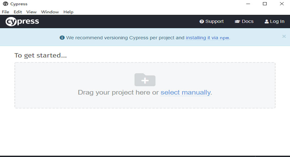 如果是使用yarn命令安装的Cypress,那么还可以通过执行yarn run cypress open启动Cypress