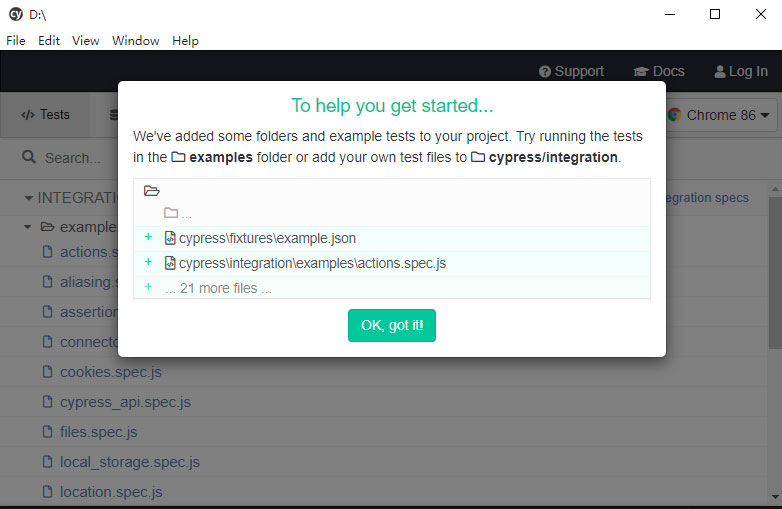 bash D:\>npx cypress open