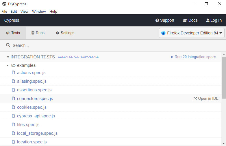 执行cypress open启动Cypress