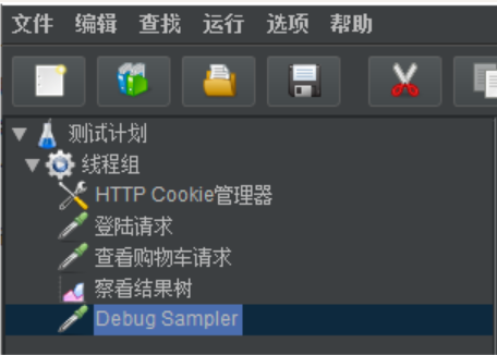 我们以上面练习为例,添加完Debug Sampler组件后,测试计划中的元件如下: