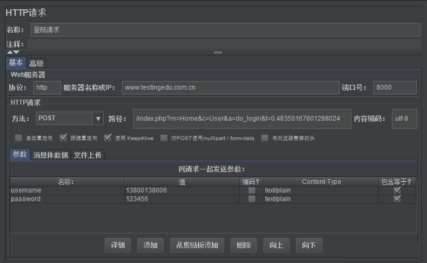通过HTTP Cookie管理器组件来记录下登陆后的Cookie信息。
