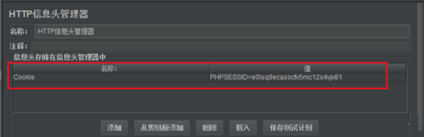 1、在HTTP信息头管理器组件中添加Cookie信息