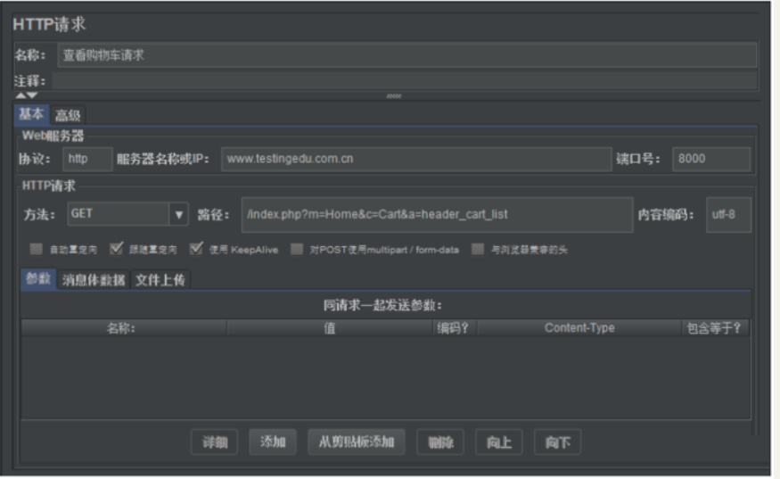 再调用查看购物车接口,自动使用HTTP Cookie管理器组件中记录下来的Cookie信息。