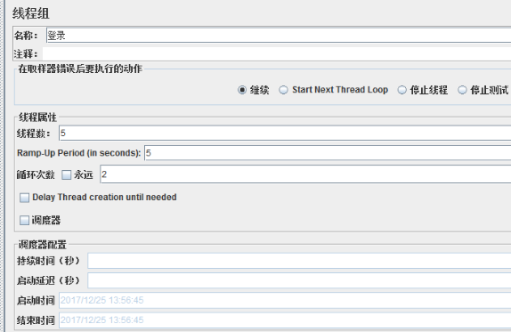 Ramp-up Period:5s内5个人完成登录,隔一秒就开始登录下一个人