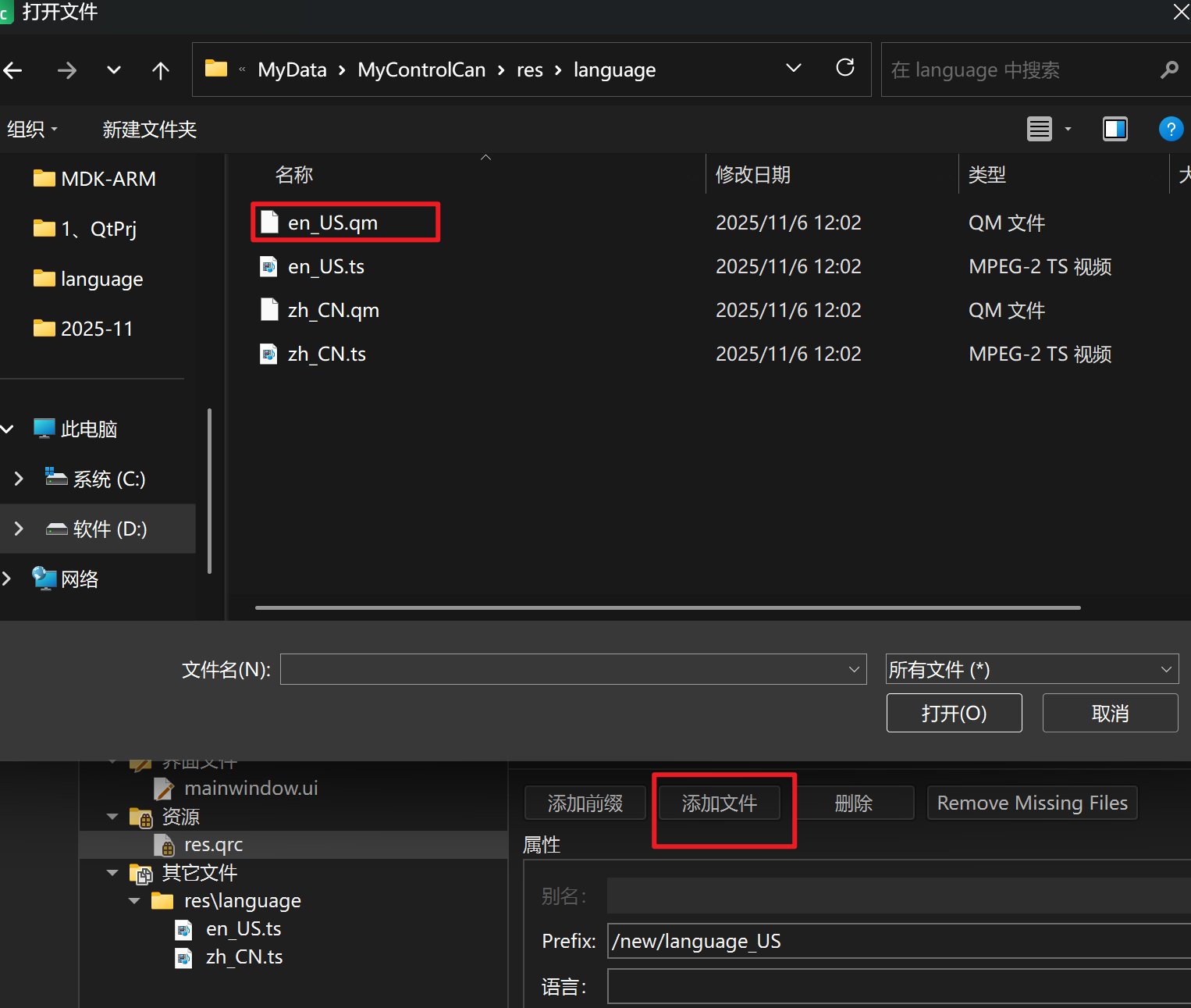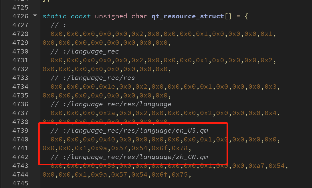 这里面有一个坑,我原本路径使用的是:qrc:/language_rec/res/language/en_US.qm,但是发现不行。