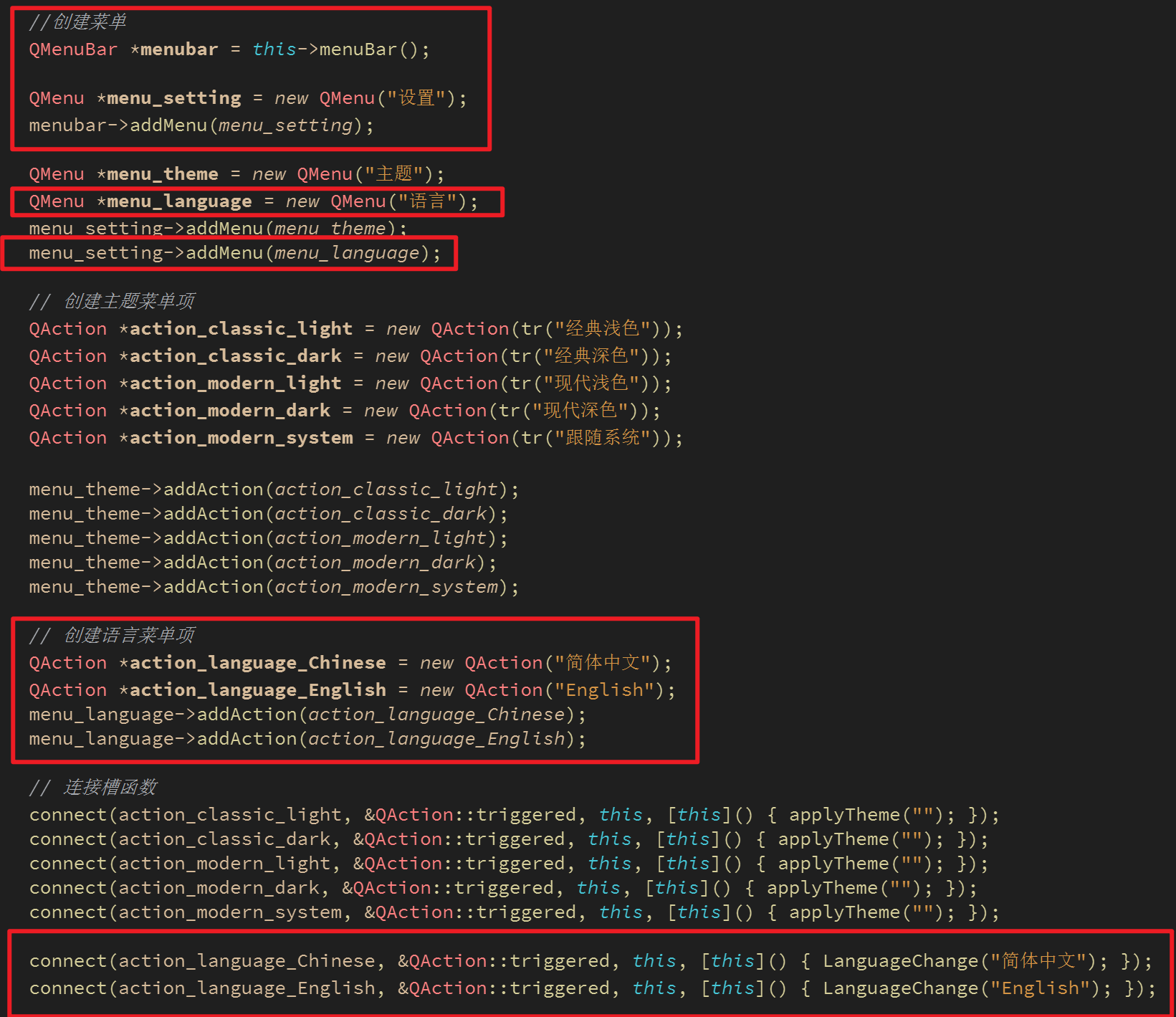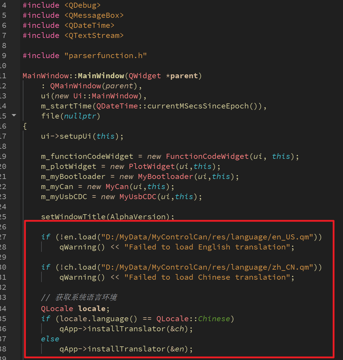 在mainwindow.cpp中加入,初始化时根据系统语言设置语言