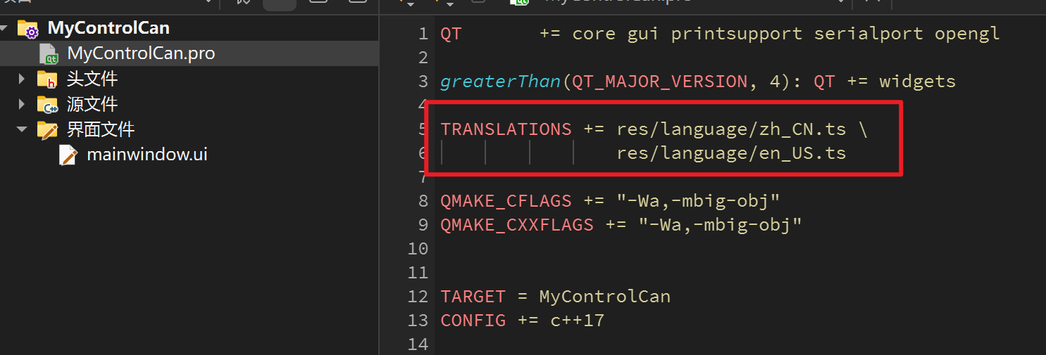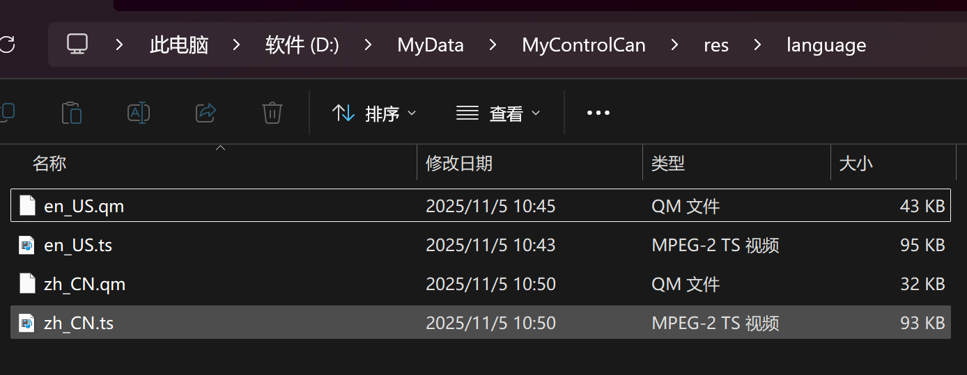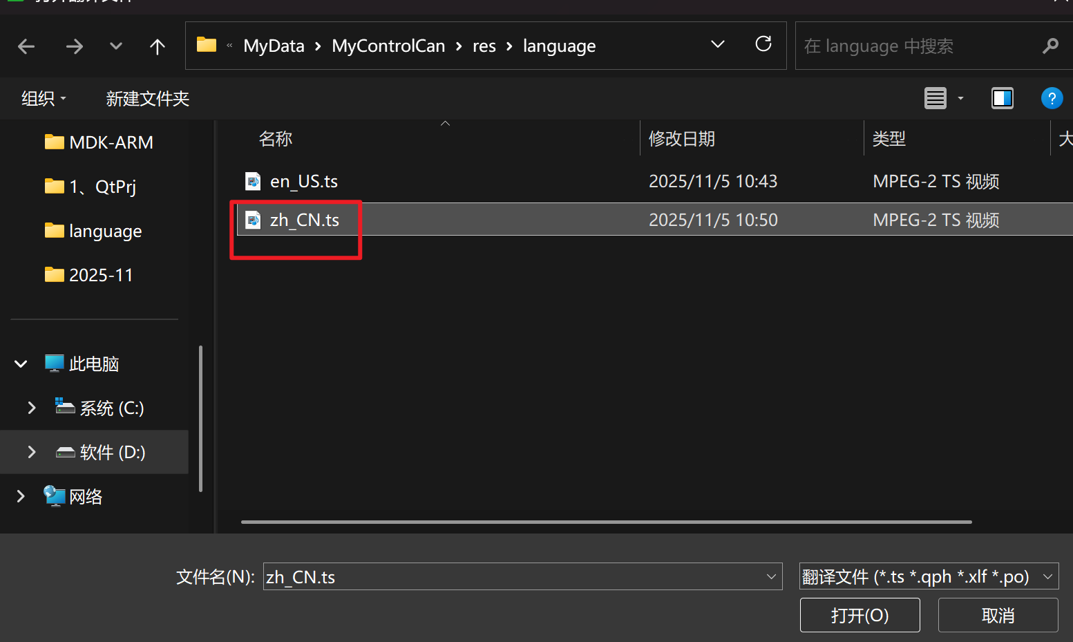 这个qm文件就是后面需要用到的。切记这个ts不要删除,不然后面修改程序后,所有的翻译都需要重新翻译,若不删除,只需要翻译新的即可。