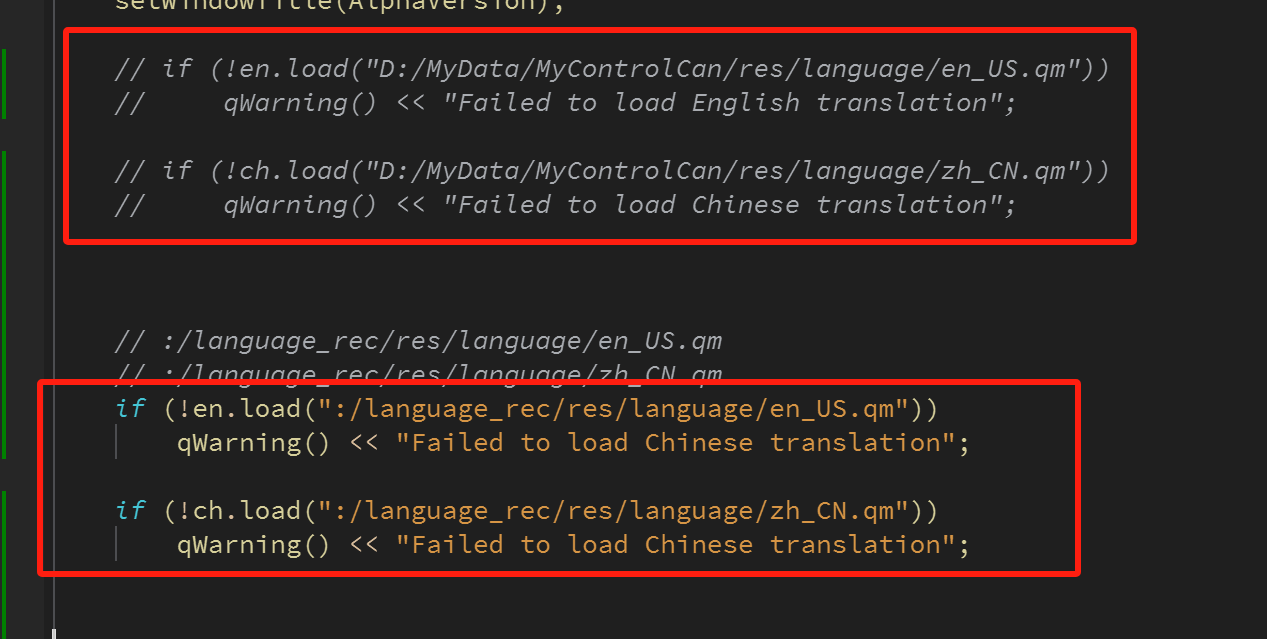 需要注意这个load路径,我这里使用了绝对路径,才能够正确的找到文件,使用相对路径 "../res/language/en_US.qm" 时,Qt 会从当前工作目录(working directory) 去找这个文件。