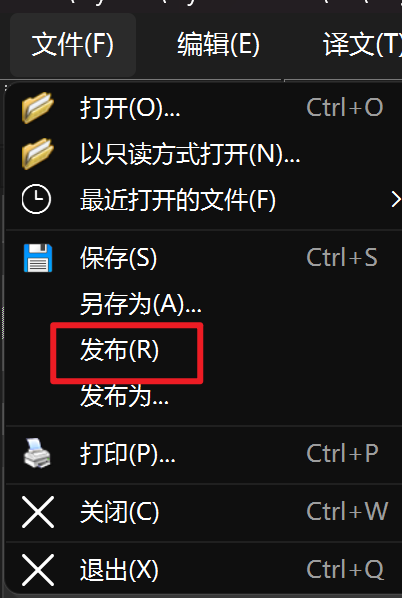 2、分别加入三个:更新翻译,发布翻译,翻译