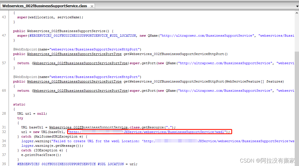 之前在做一个公司项目的时候,是一个调用webservice第三方接口的功能,我采用的是通过第三方接口生成本地的包,包里有第三方接口所有方法的类,其中有一个是Webservices_002XXXXXXXXService的文件,如下图