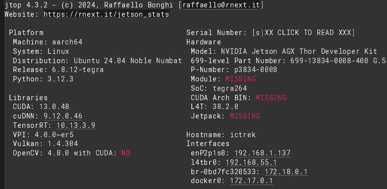 原因是jtop 4.3.2版本不支持Jetpack 7.0。