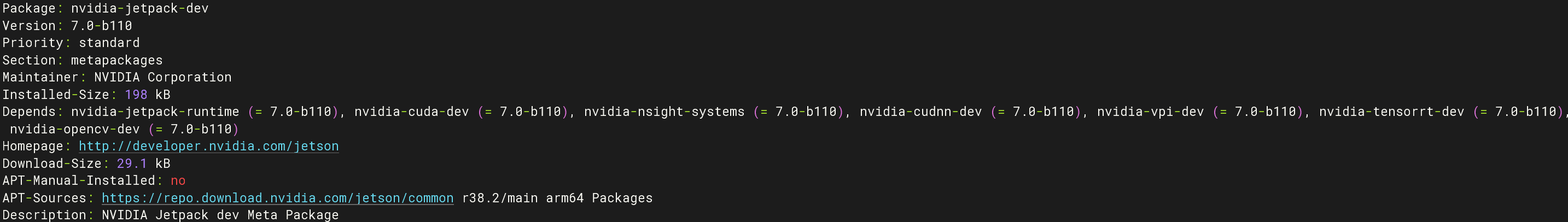 apt show nvidia-jetpack-dev -a