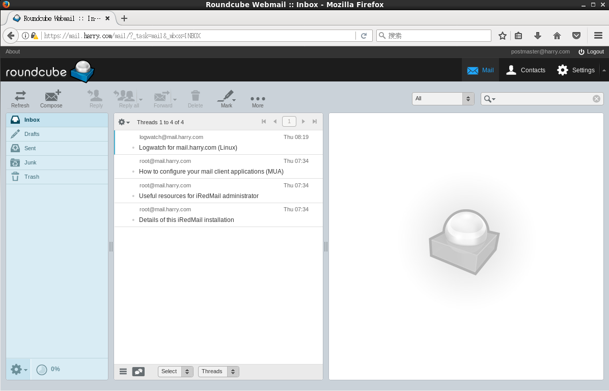 登陆IRedMail的用户WEB界面(https://mail.harry.com/mail/)