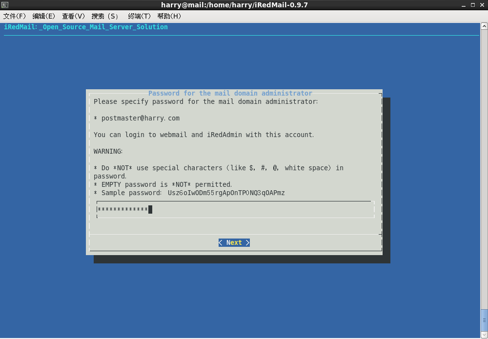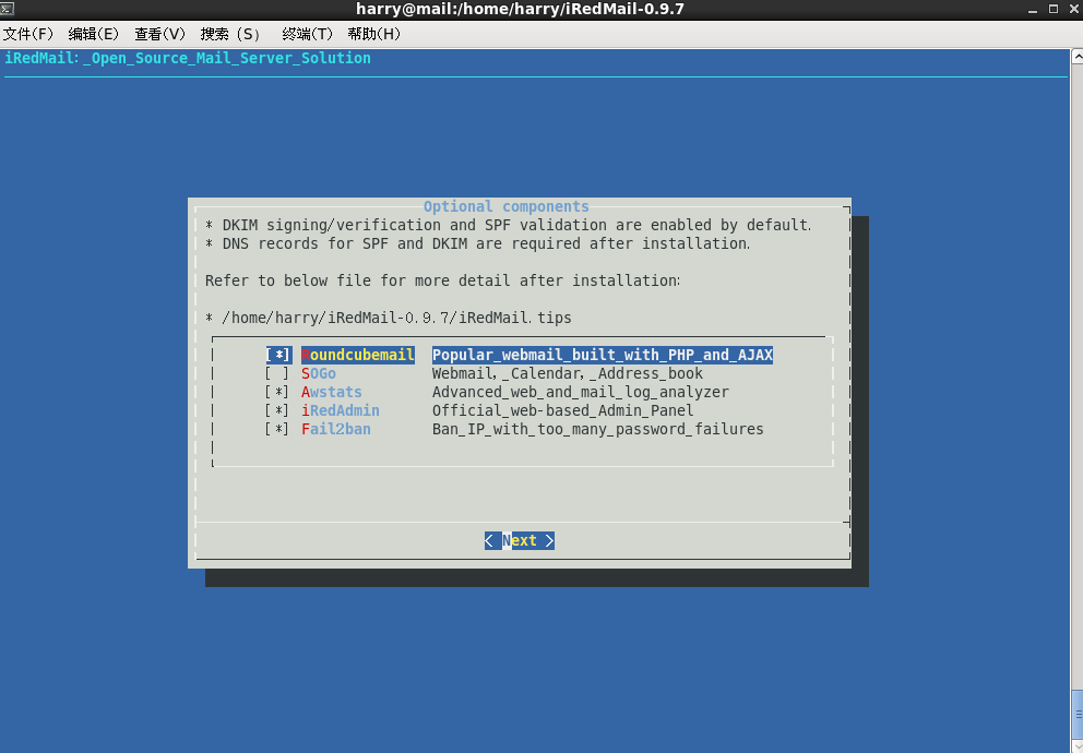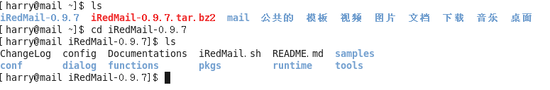 执行命令 tar xjf iRedMail-0.9.7.tar.bz2 进行解压缩