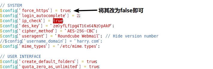 vim /var/www/roundcubemail/config/config.inc.php,到文件中设置$config['force_https'] = true;将参数改成false之后,reboot重启才可以生效。