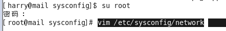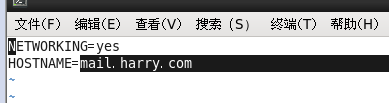 由于/etc/sysconfig/network文件的所有者和所属组均是root,所以需要以root权限来编辑/etc/sysconfig/network 文件,把hostname设置成我们需要创建的邮件域名mail.harry.com
