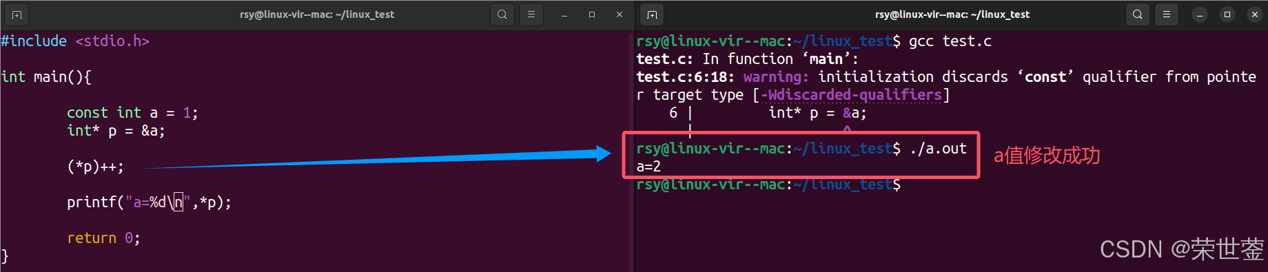 const修饰的变量修改值,可以通过指针的方式来修改。