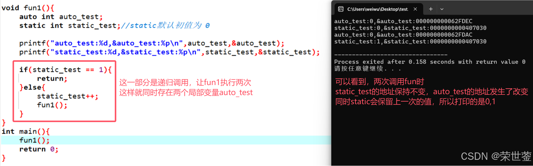对于局部变量,被static修饰后,不会在栈中开辟空间,而是存放在静态存储区,地址是固定的,因此函数退出后释放栈空间,不会影响静态局部变量。