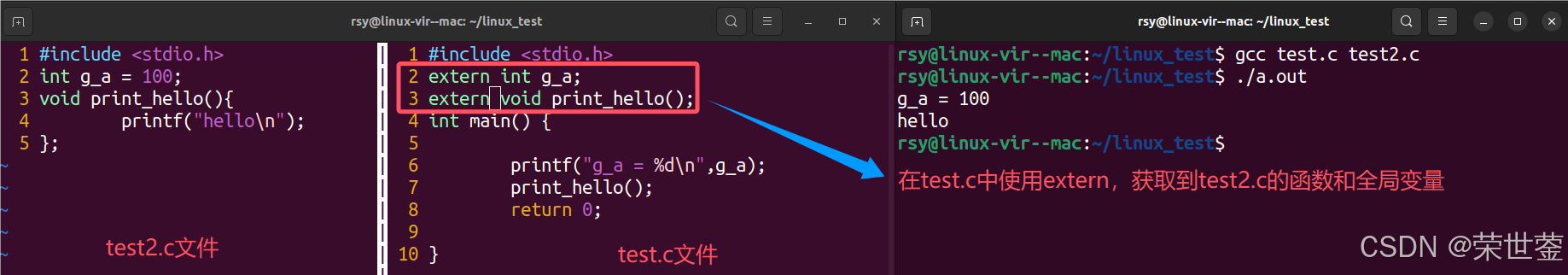 注意:static修饰的全局变量或函数,extern声明后并不能找到该全局变量或函数。