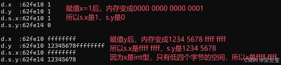 printf("d.s.y:%x %x\n",&d.s.y,*(&d.s.y));