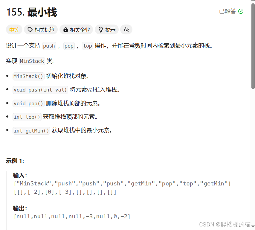 对于这道题,除了 getMin 外的功能,传统的 栈 结构中都有,所以重点在于如何实现 getMin 方法。