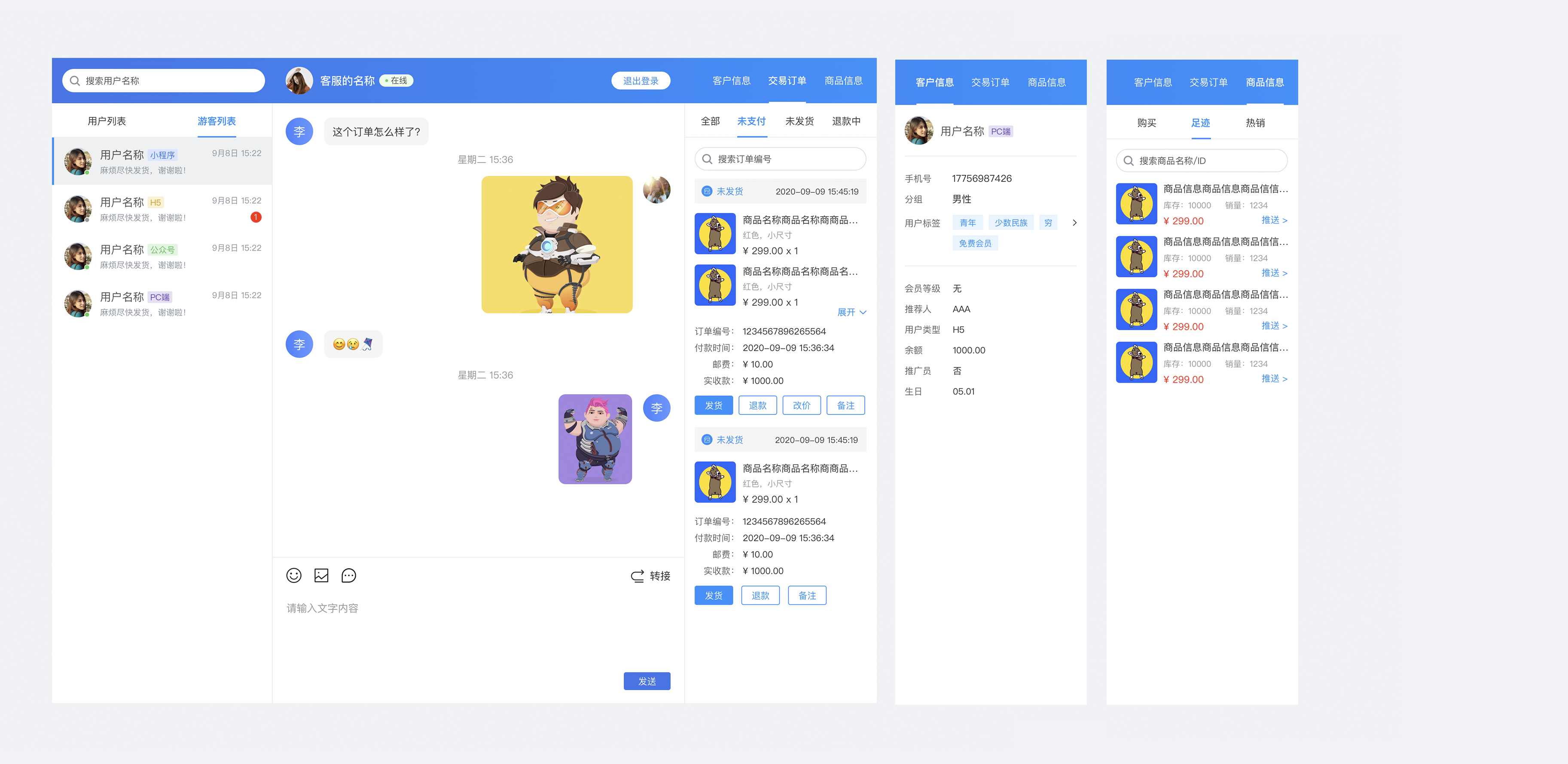 CRMEB标准版采用全新客服系统,添加客服可通过后台创建客服账号,通过账号密码登录进客服系统即可使用,目前客服系统可以做到用户咨询自动分配,区分出用户是通过移动端还是PC端进入,多个客服之间可以一键快速转接,售前售后等多类型客服无缝衔接互转,提升用户体验及好评度。