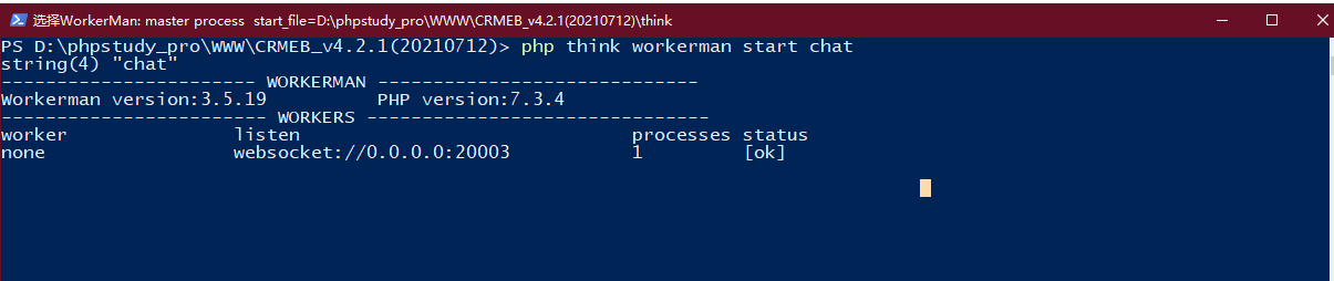 看到如下图所示,证明启动成功,下图中的端口和系统的默认端口是不一致不需要在意这些。上面也提到了长连接的端口是可修改的。