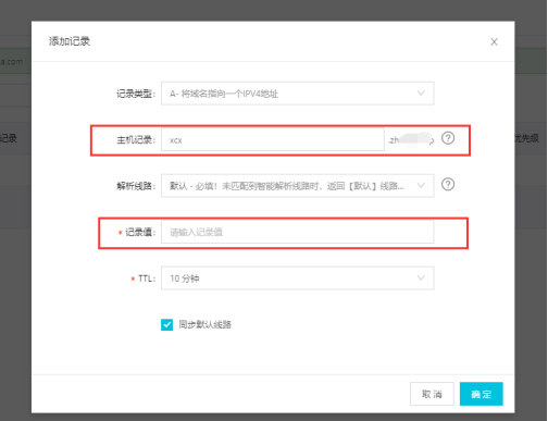 记录值:输入你服务器公网IP地址。(服务器公网地址IP可在云服务器ECS → 实例 查看)