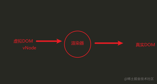因此需要编写一个渲染器, 将上面的虚拟 DOM 渲染为真实 DOM: