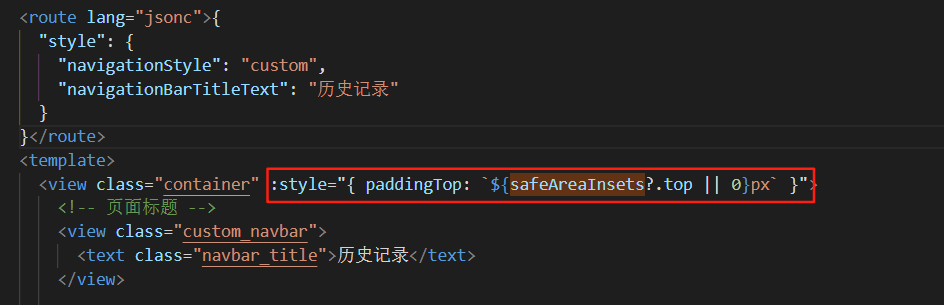 在标题父盒子上加上:style="{ paddingTop: `${safeAreaInsets?.top || 0}px` }",在<script setup>里面加上let safeAreaInsets
