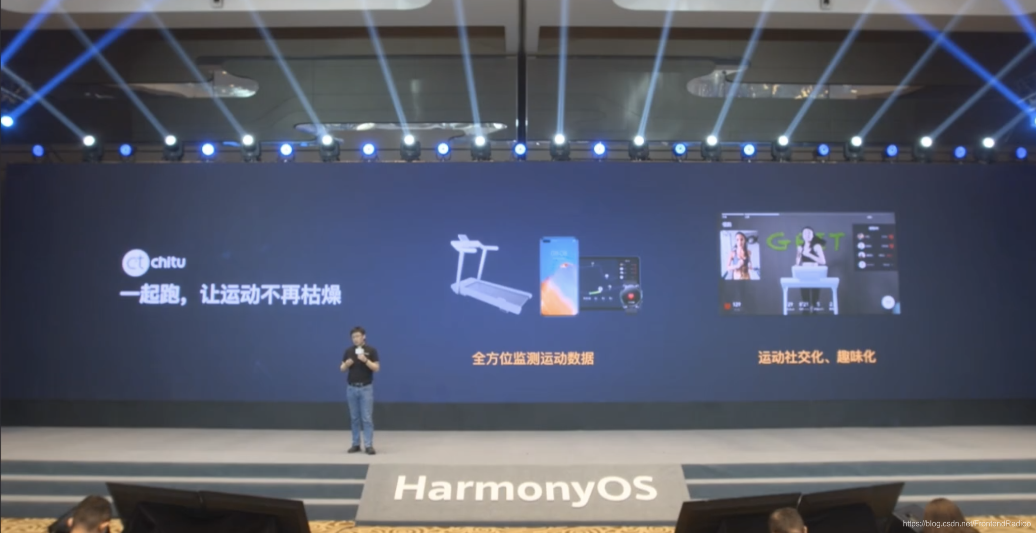 “万物互联”的时代,随着科技的迅猛发展,科幻片的场景越来越多出现在了我们生活当中。段梦然介绍了一些改变我们生活方式的创新应用,都非常有趣,比如搭载了 HarmonyOS 的赤兔跑步机。赤兔将跑步机、手表、手机、平板等多设备组成了一个超级终端,可以和网友互动赛跑,将跑步赋予了社交属性,不再枯燥。