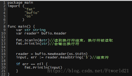 输入经常会用到,常见的输入方法有Scanln(),还有利用bufio包输入,方法如下:
