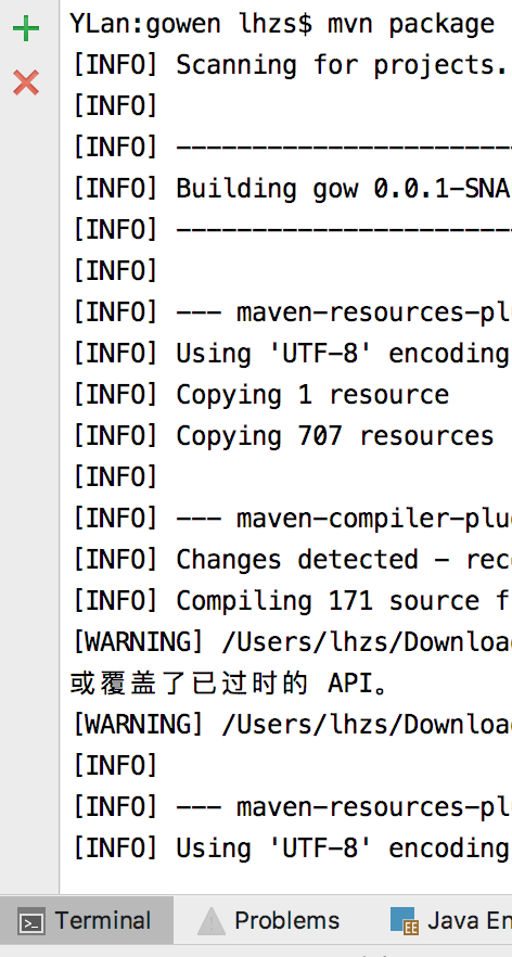 方式有两种 1.终端 cd到target下 $:mvn package (推荐)