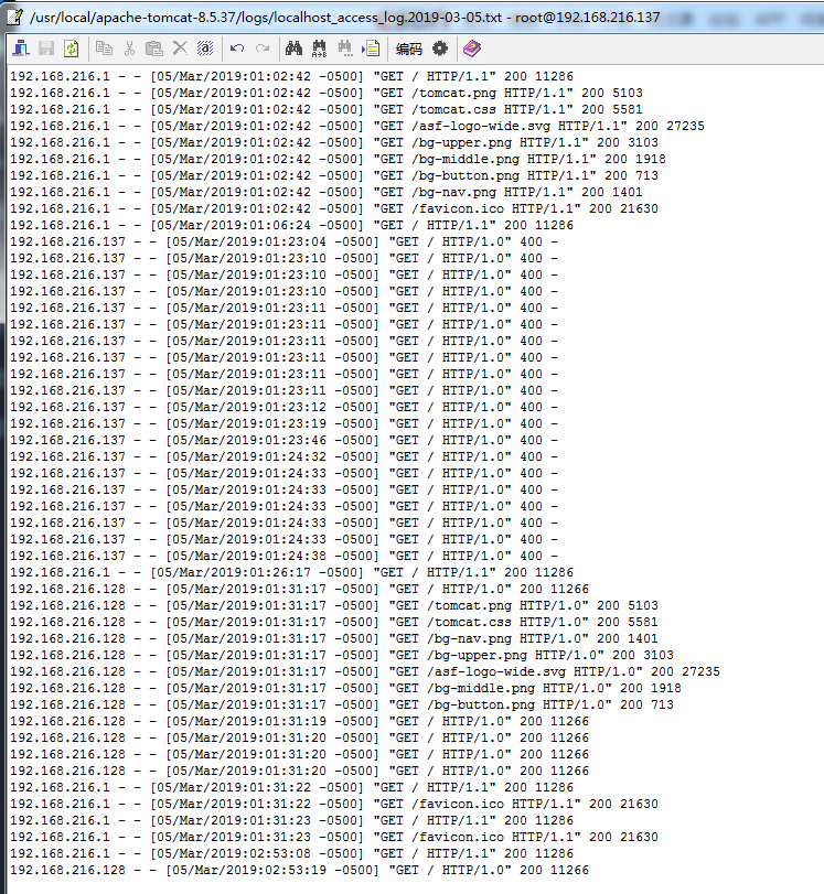 我在192.168.216.128上没有开启tomcat服务器,只有137机器上开启了tomcat服务器,所以访问到了!而且可以去看137机器上的tomcat日志。
