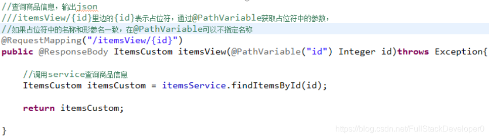 如果RequestMapping中表示为"/ itemsView /{id}",id和形参名称一致,@PathVariable不用指定名称。
