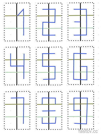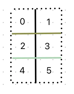 我们拿数字6举例子,我们将数字占有的坐标区域分为6个部分: