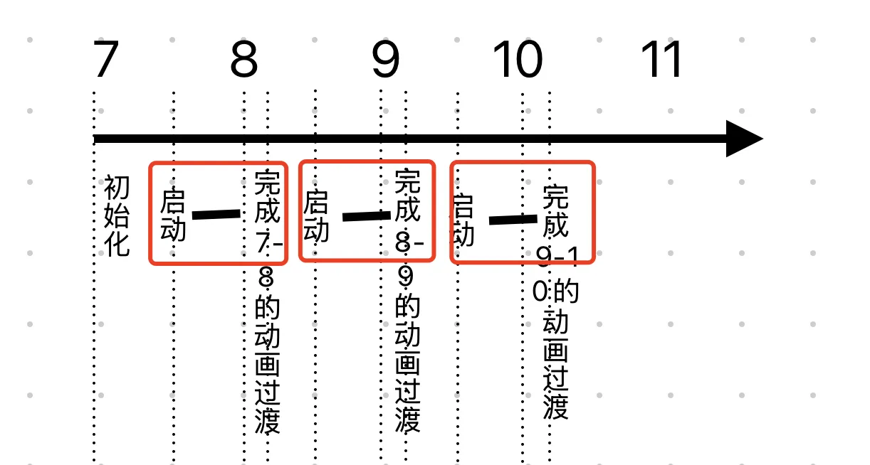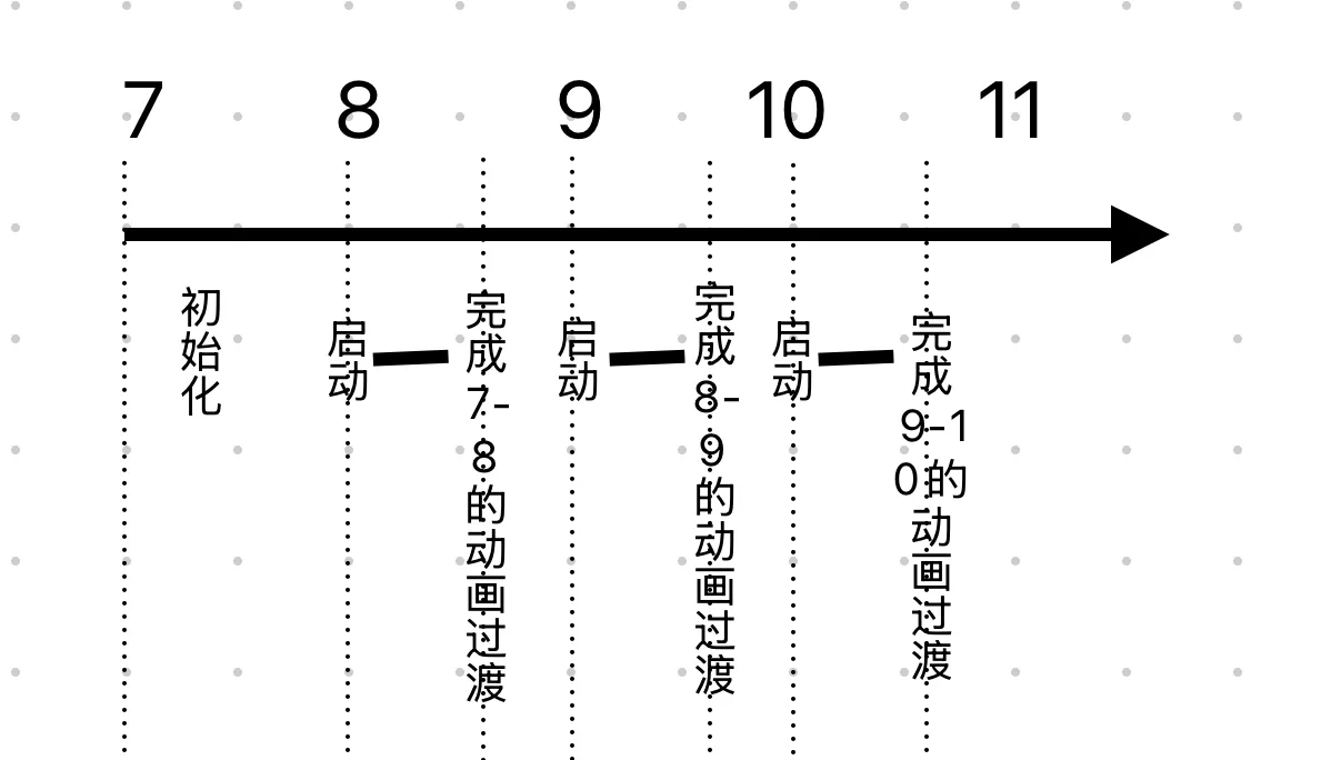 理想情况是我在初始化的时候会设置当前秒,比如7s,然后在8s的0ms的时候启动动画,会在650ms内完成上一秒到下一秒动画过渡,然后在9s 0ms的时候启动下一次动画,依次反复。