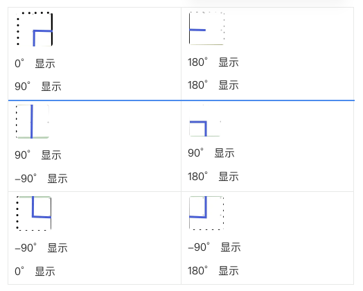 根据安卓角度规则,各下标部分显示线条的角度为: