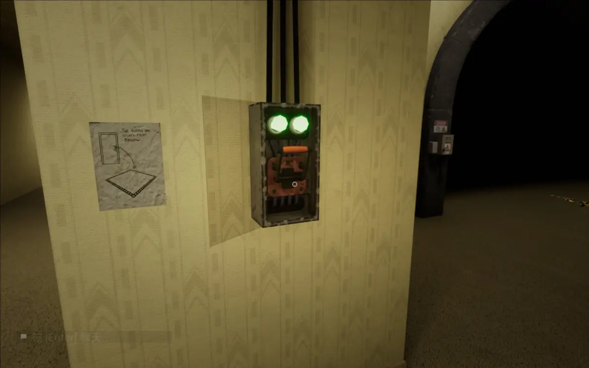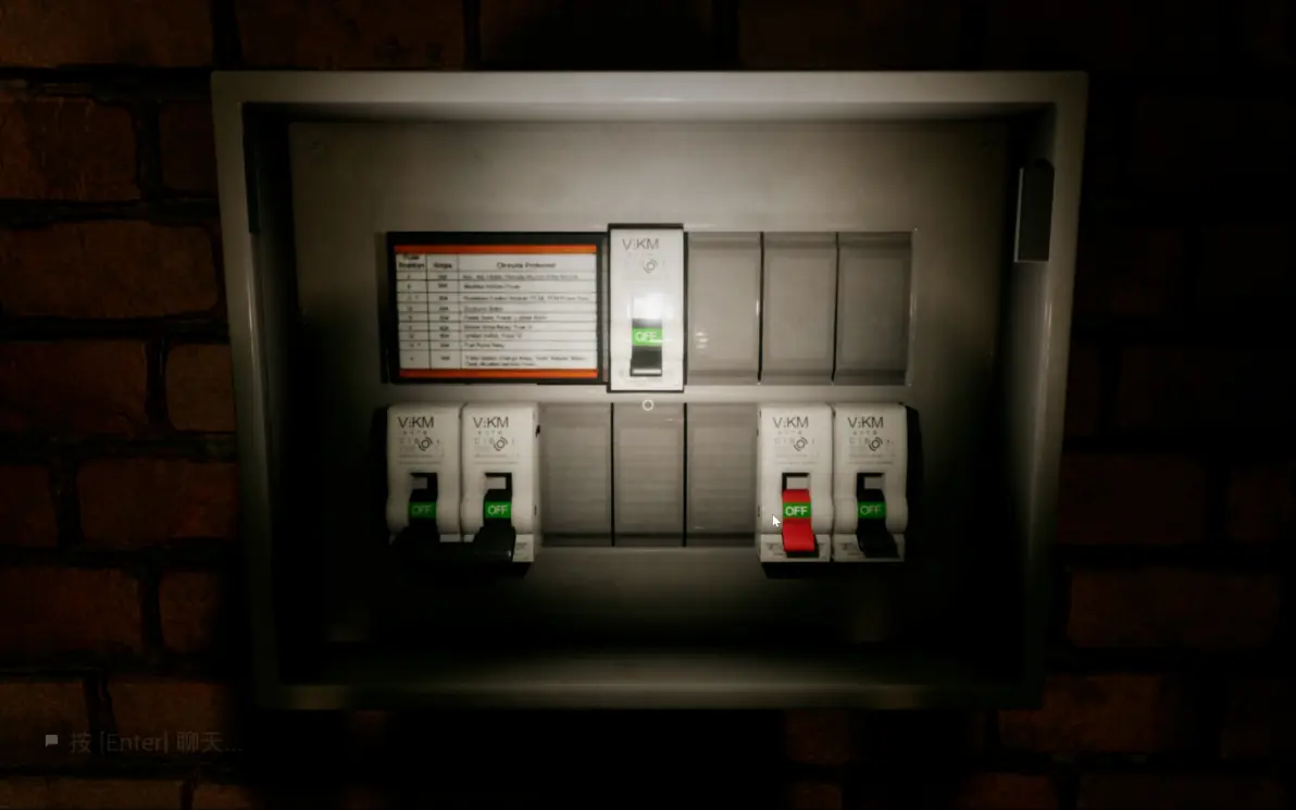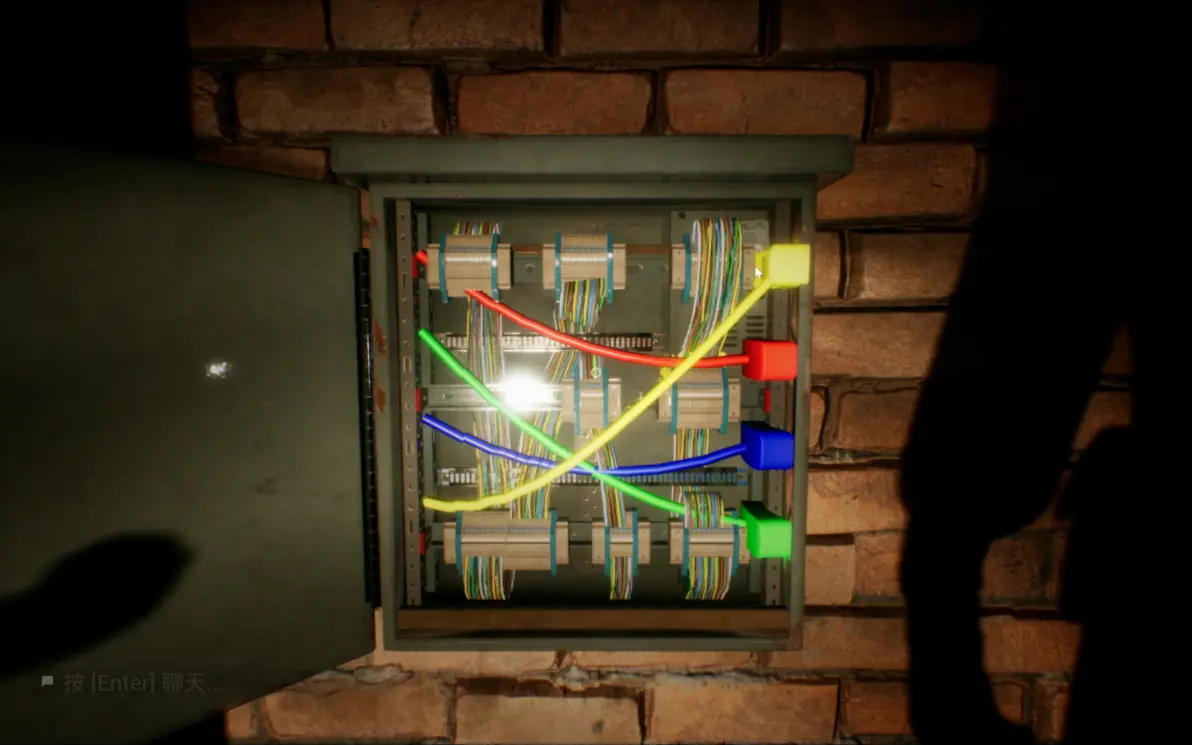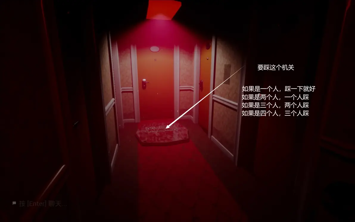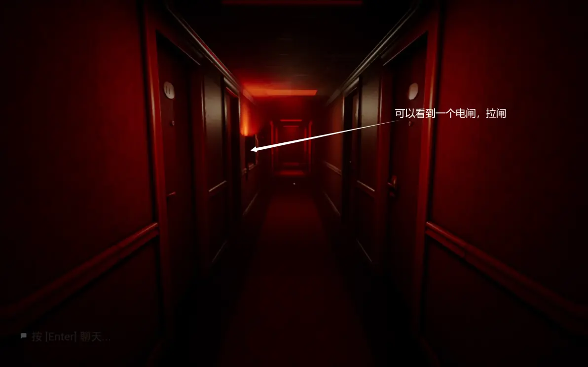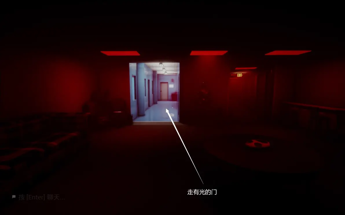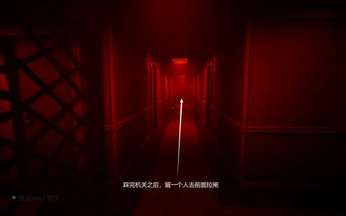 这里要在开灯的时候进两边的隔间,寻找下一关的门,所有人在尽头呆在一起