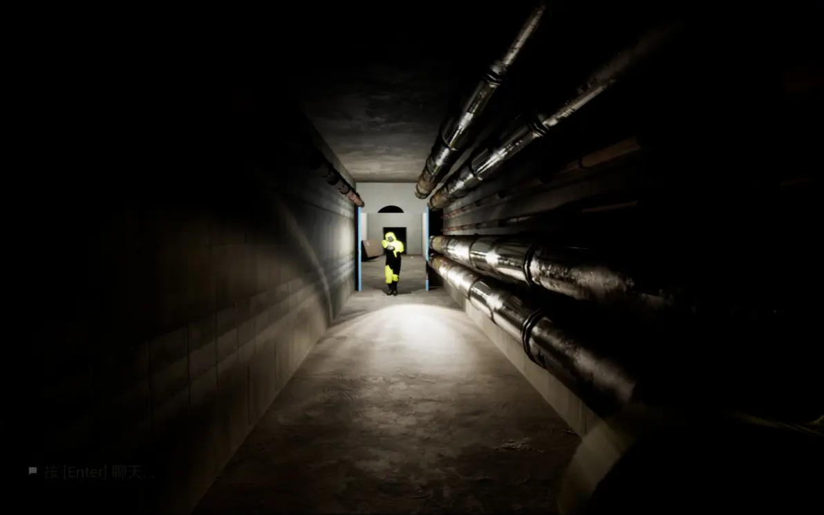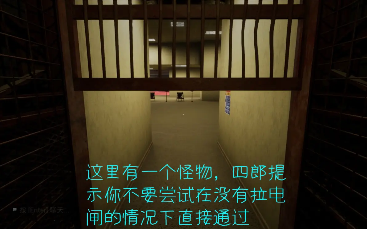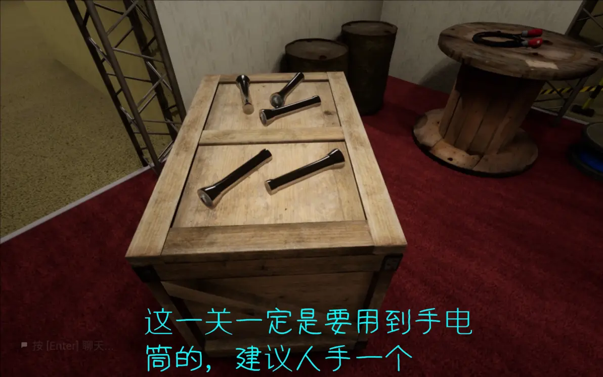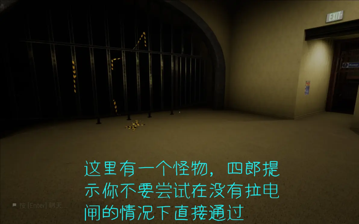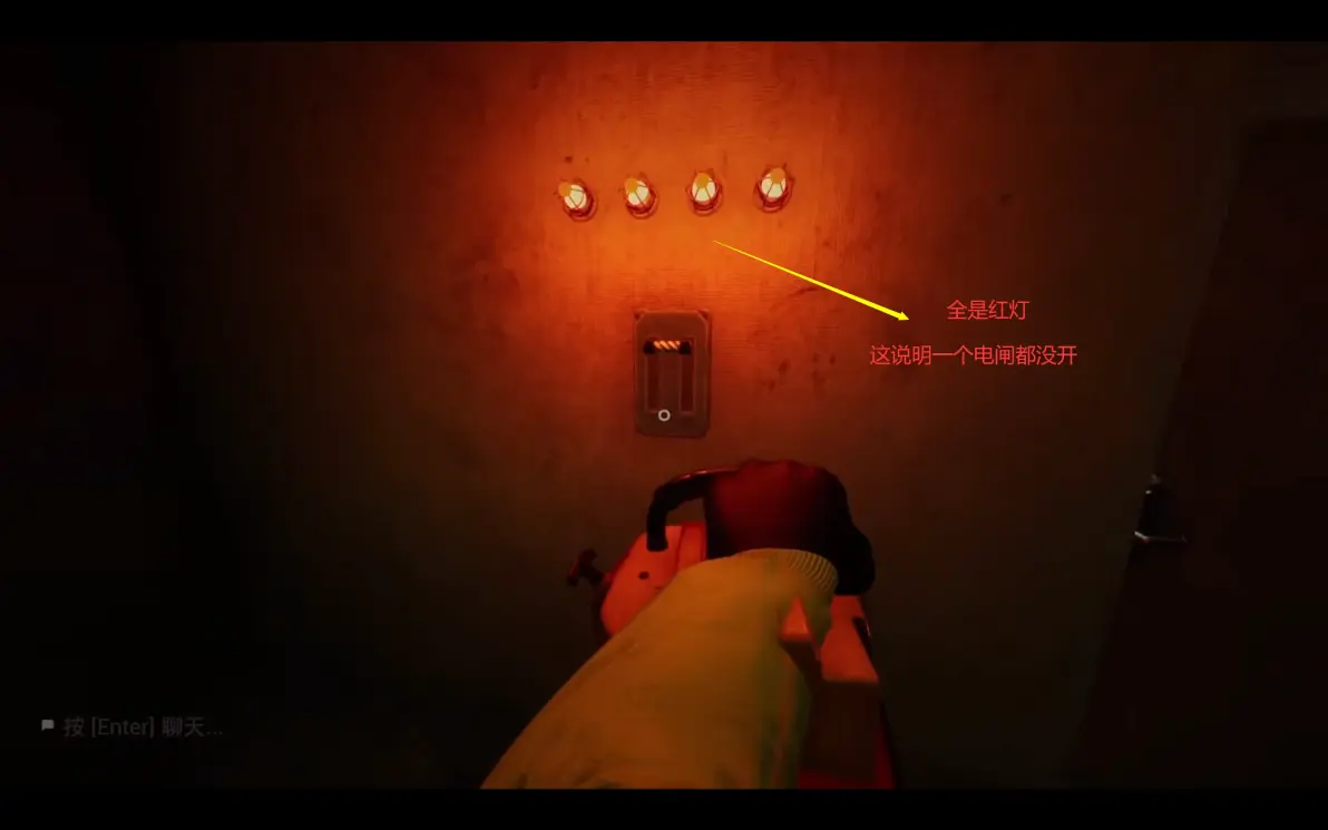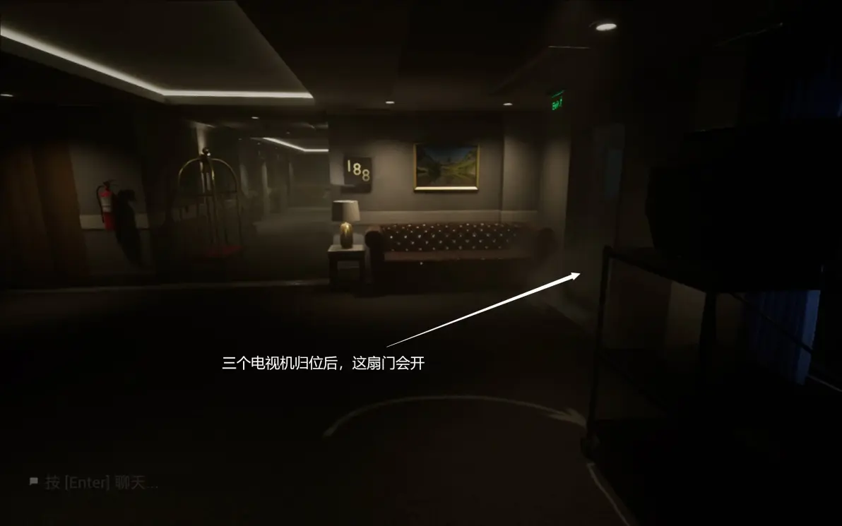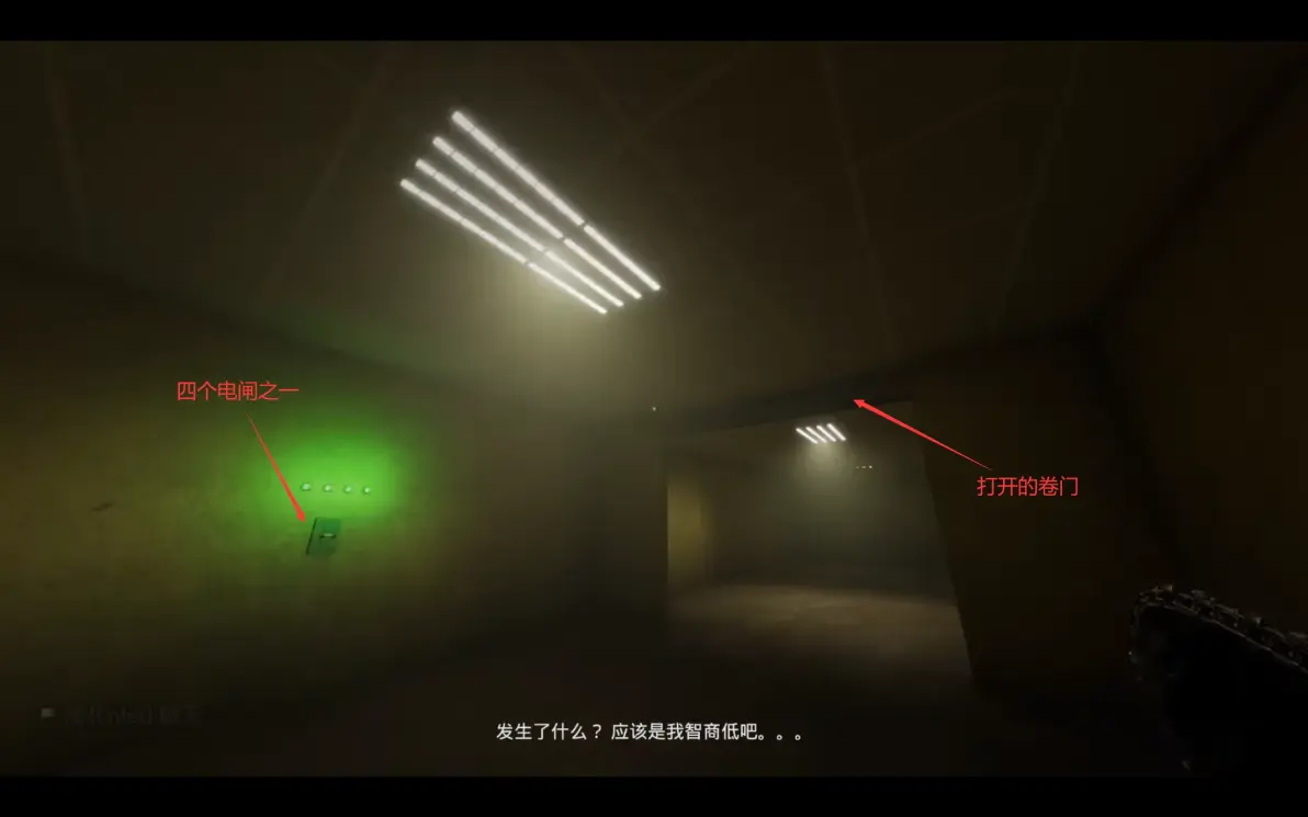这里要在开灯的时候进两边的隔间,寻找下一关的门,所有人在尽头呆在一起