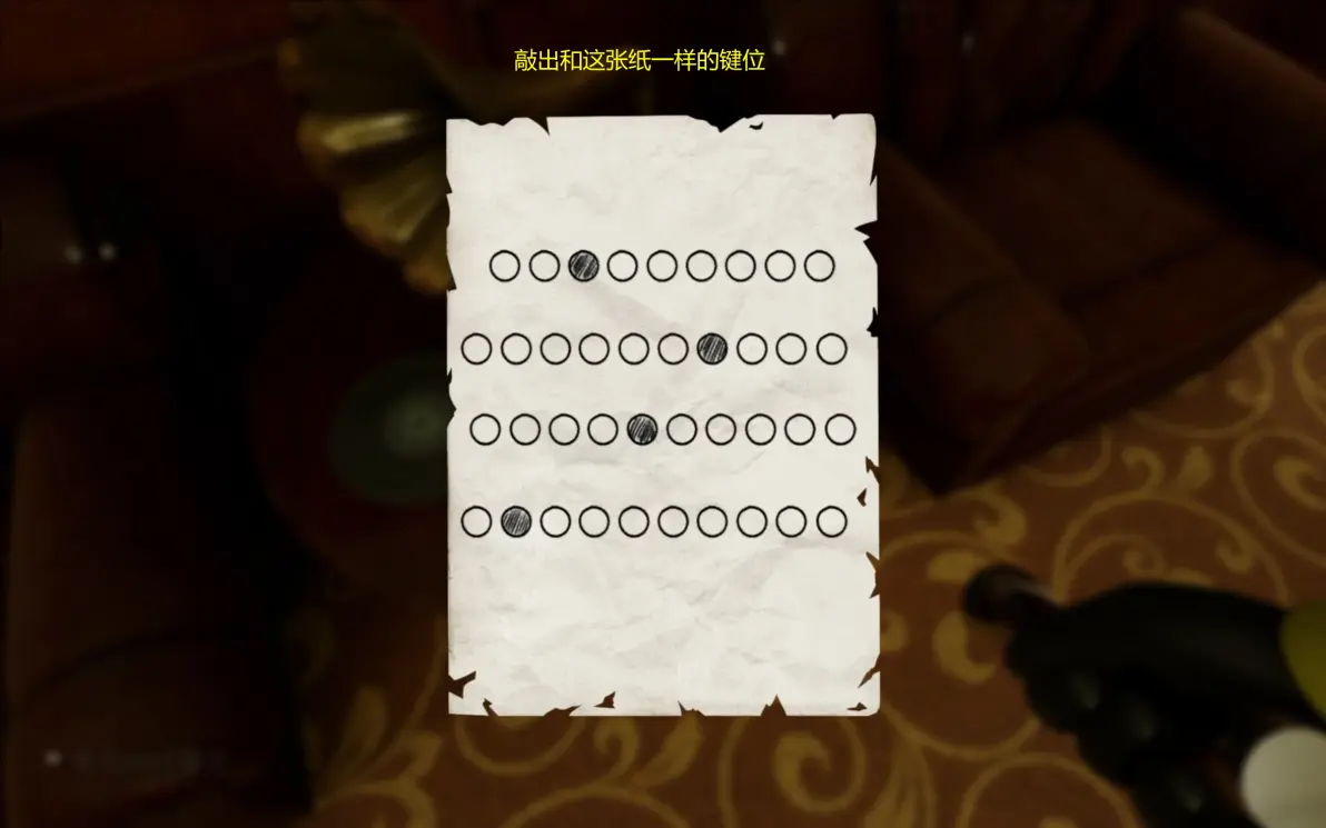 找到四把钥匙(随机分布在桌子上或者柜子里)之后,找到有四个锁孔的门,小心窃皮怪